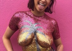 "Голый" костюм: девушки массово оголили интимные части тела и украсили их блестками