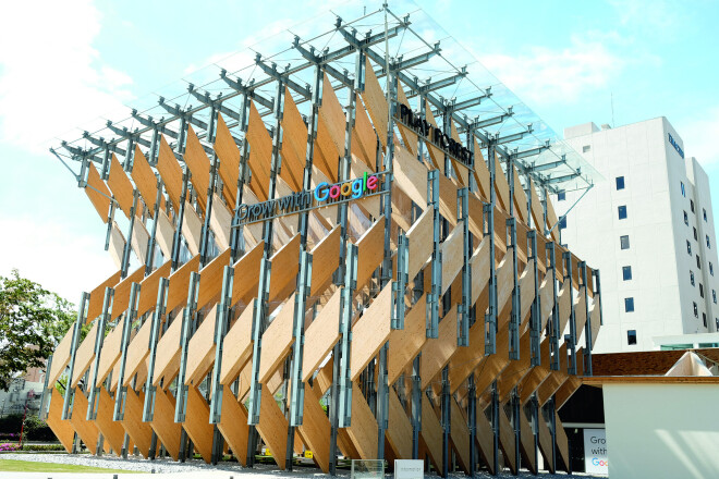 А если захочется красоты, можно или в окошко взглянуть на Токийский залив, или до павильона Кэнго Кума CLT Park Harumi прогуляться.