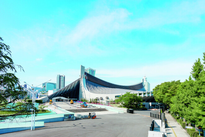 Yoyogi National Gymnasium – самое знаменитое из зданий Токийской Олимпиады 1964 года. Идеальный пример того, как можно возвести посреди городского парка два внушительных строения и при этом не испортить ландшафт, а украсить его; идеальный пример того, как можно подружить европейский модернизм, древние традиции японского зодчества и новейшие инженерные решения. Появись этот комплекс не 57 лет назад, а сейчас, никто не учуял бы подвоха: ни линии, ни материалы, ни технологии нисколько не устарели. Разве что подвесной кровельный пролёт Гимназиума со временем утратил титул крупнейшего на планете.