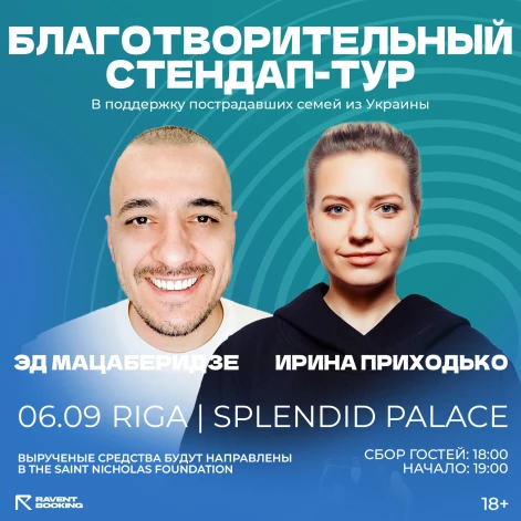 Знаменитый стенд-ап комик из Беларуси с миллионами просмотров на YouTube Ирина Приходько и Эд Мацаберидзе - украинский телеведущий, шоумен и комедийный актер - отправляются в благотворительный тур в поддержку пострадавших украинских семей. Уже 6 сентября они выступят в Риге с незабываемой программой.