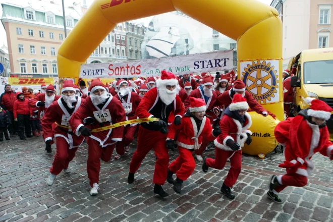 Забег Санта-Клаусов, проводимый Международным Ротари клубом, возвращается на улицы Риги в воскресенье, 11 декабря. Забег Санта Клаусов - благотворительная акция, которая пройдет в Риге уже в 15-й раз. Забег начнется в 11.00 в Риге на Домской площади. Любой, кто купил билет, может принять участие в забеге.