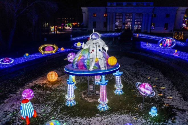 В прошлые выходные в литовской Пакруойской усадьбе собрались тысячи любопытных из Литвы и Латвии. Здесь открылся крупнейший зимний фестиваль в странах Балтии "Рождественская космическая станция". Парк световых скульптур на площади 15 гектаров дополняли лазерные шоу, созданные известными литовскими художниками по свету, и выступления профессиональных актеров. Фестиваль будет проходить каждые выходные до середины января.