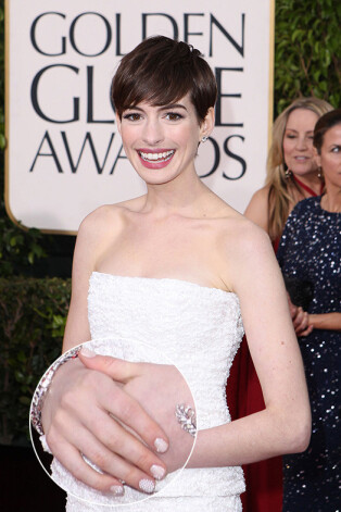 Незадолго до этого Энн блистала на красной дорожке «Золотого глобуса» в наряде Chanel с 3D маникюром, созданным мастером Алисией Торелло при помощи лака Chanel: «Энн хотела создать эффект пузырьков шампанского на ногтях, — объяснила мастер, — но мы полностью покрыли пузырьками только безымянные пальцы, а на остальных оставили акценты в виде капелек».