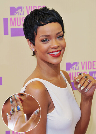 Маникюр барбадосской певицы Рианны (24) не менее ярок и скандален, чем она сама. Она обожает ногти XXL длины, покрытые ярким цветом