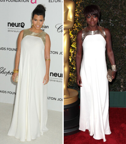 В ноябре прошлого года афроамериканская актриса Виола Дэвис (46) позировала в таком платье на ежегодном балу губернатора Калифорнии. Золотистый верх наряда определил выбор аксессуаров — в руках у нее был золотистый клатч Jimmy Choo, а на ногах — золотистые туфли с открытым носом. Браслет и длинные серьги довершали образ актрисы.
