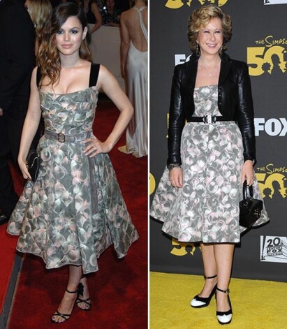 С разницей в два года две американские актрисы надевали платья Louis Vuitton с принтом в виде перьев из осенней прет-а-порте коллекции-2010.