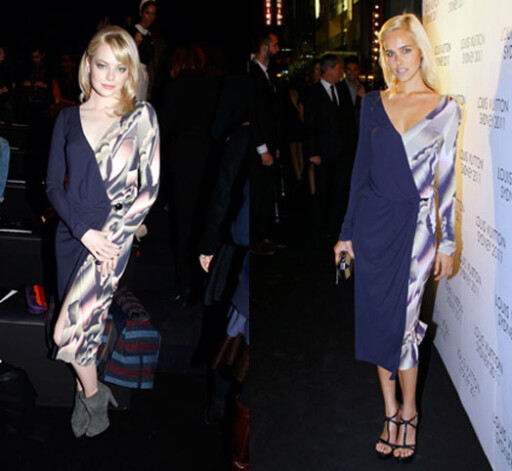 Другая актриса, Изабель Лукас, выбрала точно такое же платье для вечеринки в честь открытия бутика Louis Vuitton в Сиднее в декабре 2011 года. В руках у нее был зеркальный клатч, а на ногах — босоножки.