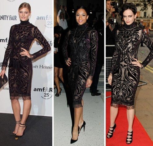 Модель Констанс Яблонски (20), певица Сиара (26) и актриса Ева Грин (31) объединяет платье Emilio Pucci из осенней коллекции-2011, которое они все надевали .