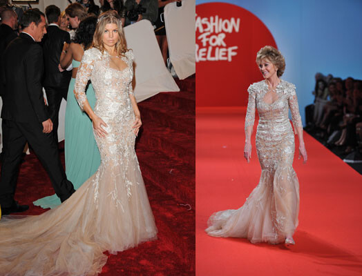 Солистка группы Black Eyed Peas Ферджи (36) в этом кружевном платье Marchesa с длинными рукавами и шлейфом из осенне-зимней коллекции-2011 побывала на ежегодном балу Института костюма в Нью-Йорке в начале мая.