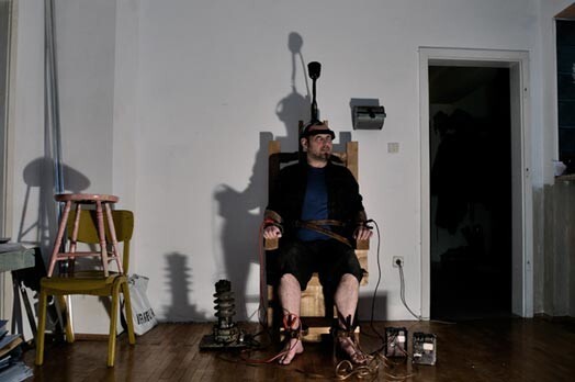 В середине ноября в прямом смысле самоубийственный перформанс затеял российский художник-акционист Олег Мавроматти (45). В жутком онлайн-шоу под названием «Свой/Чужой» он поставил на карту собственную жизнь. Специально для перформанса Мавроматти изготовил точную копию электрического стула, к которому был подведен ток. Сидя на нем, он и проводил большую часть времени своего «эксперимента». В течение семи дней в Интернете было открыто голосование, в ходе которого каждый желающий, зарегистрировавшись, мог отдать свой голос за или против того, чтобы пустить ток. Голос в пользу казни при этом нужно было оплатить символической суммой в 50 евроцентов.