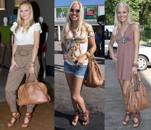 Латвийская телеведущая Майя Силова (25) любит коричневые босоножки Bottega Veneta. Она надевала их два лета подряд. Летом 2009 года с модными в том сезоне брюками с завышенной талией, а этим летом ― с короткими джинсовыми шортами и коричневым летним платьем.