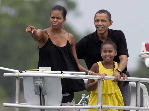 На побережье Флориды Обама вместе с дочкой Сашей в показательных целях искупались в море. Ведь из-за нефтяной катастрофы охота ехать сюда у остальных американцев и туристов из других стран заметно поубавилась. Так же Барак, Мишель и Саша Обама в эти выходные предавались тихим отпускным радостям — отправились на водную прогулку, играли в мини-гольф и угощались фастфудом, демонстрируя, что они до сих остаются ролевой моделью для тысяч американских семей. И могут обойтись без таких излишеств, как утонченная европейская кухня и номера в отелях за 2500 долларов.