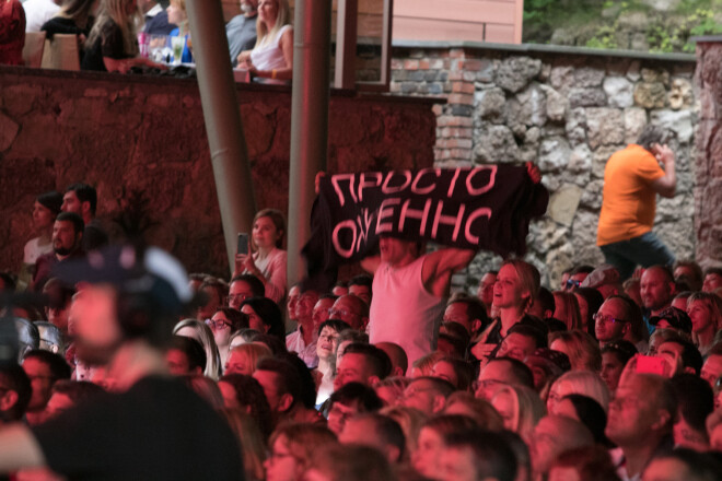 Некоторые поклонники творчества коллектива были одеты в футболки с его символикой. Немало было и девушек "на лабутенах и в восхитительных штанах".