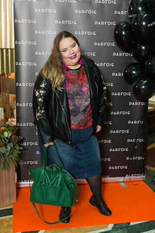 В этом наряде столкнулись сразу три стиля — casual (куртка и кеды), женственная классика (платье) и эксцентрика (сумочка). На мой взгляд, для одного образа многовато. Хотя сама идея сочетания объемной джинсовой куртки с трикотажным платьем мне нравится.