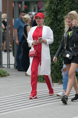 Сочетание в одном комплекте нескольких оттенков белого — это высший пилотаж современной моды. Алене это вполне удалось. Хочу отметить и тонкое, умеренное использование блеска. Единственный минус — в таком комплекте молоденькая девушка смотрится гораздо старше своего возраста. А ведь в 20 лет (да еще с такими заслугами!) можно было бы и похулиганить.