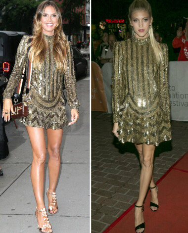 Немецкая и британская супермодели выходили в свет в золотистых блестящих мини-платьях Marc Jacobs.