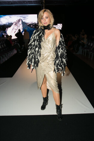 Похвальна та смелость, с которой Алина носит сложные, вычурные вещи — такие, как эта лохматая шубка или массивное ожерелье-ошейник. Но все-таки, на мой взгляд, в этом случае она слегка «перетумачила».