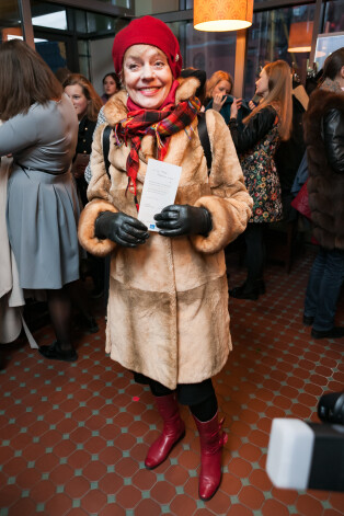 К этому образу может быть масса претензий, но нельзя не признать очевидное: головной убор актрисе очень подходит, а весь ее игривый, даже несколько хулиганский наряд способен расцветить наш унылый осенний уличный дресс-код.