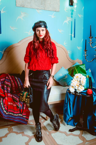 Кожаный берет в духе Мадонны эпохи 80-х (а если копнуть еще глубже, то вспомнятся «черные пантеры» 70-х) стал популярным благодаря знаменитой феминистской коллекции Марии Грации Кьюри для модного дома Dior. Безусловно, в этом головном уборе есть нотка победной женской самоуверенности. В целом этот образ мне нравится, хотя с аксессуарами здесь легкий перебор.