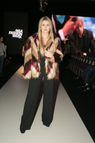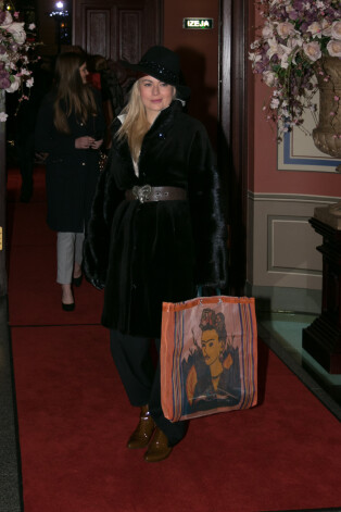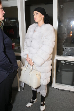 Объемный удлиненный полушубок чаще всего носят с узкими прилегающими брюками — по контрасту. Но иногда выбранный вами наряд не вписывается в эту концепцию, и тогда приходится менять правила игры. Ольга вышла из положения весьма остроумно — подчеркнув талию широким поясом и надев кокетливую шляпку. Таким образом она сместила акценты и привлекла внимание к верхней части силуэта. Правда, все взоры все равно обращены на ее сумку, которую для этого образа нельзя назвать удачной. Но своей цели — привлечь внимание — девушка явно добилась.