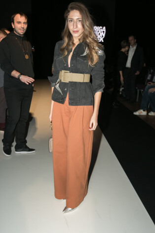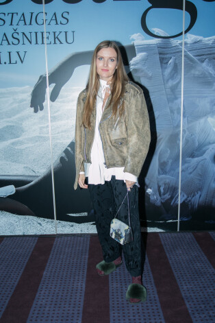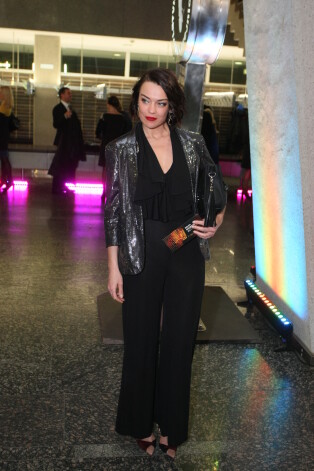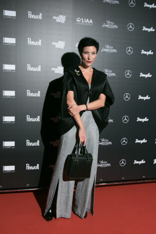 Широкие брюки с разрезами — вещь неоднозначная. Этот фасон сильно дискредитирован героинями красных дорожек, которые довели эту идею до абсурда: высота разрезов у них доходит аж до трусов (у кого таковые вообще имеются). Наряд Иевы, к счастью, вульгарностью не страдает. Но все-таки создается ощущение какой-то дисгармонии. На фоне этого роскошного жакета брюки смотрятся немного дешево, словно провинциальная простушка рядом со столичной аристократкой.