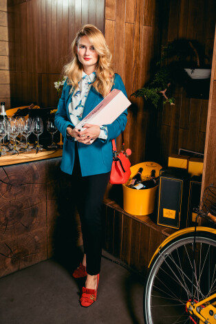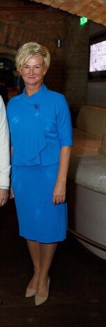 В этом комплекте я могла бы похвалить только бирюзовый цвет, который Елене, безусловно, очень идет. Что касается фасона вещей и их сочетаемости друг с другом, то, извините, все это немного в духе «интердевочки». Если уж так хочется надеть ботфорты с мини-юбкой, то не стоит демонстрировать «голые» ноги: вместо колготок телесного цвета следовало бы надеть плотные черные. Градус сексапильности остался бы прежним, зато вульгарности стало бы меньше.
