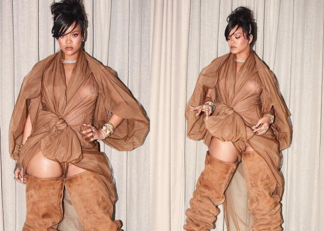 фотографии откровенного костюма Рианны с музыкального фестиваля Coachella вызвали неоднозначную реакцию поклонников в Instagram. Девушка появилась в коричневом полупрозрачном полотне, обернутом вокруг тела, через которое просвечивала ее голая грудь. Певица дополнила образ высокими сапогами-уггами на каблуках.