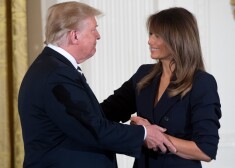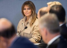 С начала месяца она уже три раза успела выйти в свет и доказать всем, что чувствует себя прекрасно и поводов для беспокойства нет. Мелания вместе со своим супругом Дональдом Трампом принимала в Белом доме испанских монархов: короля Филиппа VI и королеву Летицию, которые несколько дней назад прилетели в США.
