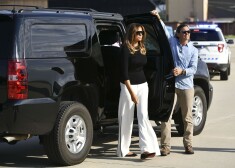 Мелания, Дональд и Бэррон Трамп с матерью Мелании Амалией Кнавс по дороге во Флориду