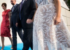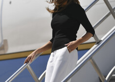 Американская первая леди появилась в родовом имении герцогов Мальборо, где, к слову, родился Уинстон Черчилль, в бледно-желтом шифоновом платье J.Mendel. Стилист Мелании Трамп, Эрве Пьер, рассказал, что Жиль Мендель создал этот наряд на заказ и специально для такого случая. По словам Пьера, выбор бледно-желтого оттенка, одного из любимых тонов королевы Елизаветы II, был сделан в знак уважения к монарху.
