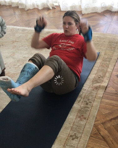 Дрю поделилась несколькими фото, сделанными в спортзале, благодаря которым продемонстрировала свои достижения. На первом снимке Бэрримор, которую в тот момент было трудно назвать стройной, отчаянно пытается выполнить предписанное ей личным тренером упражнение для брюшного пресса.