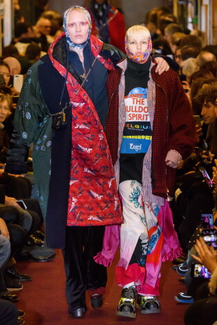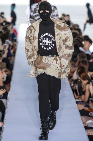 До поры до времени Vetements избегал громких политических заявлений, ограничиваясь лозунгами в духе подросткового бунтарства. Но коллекцию весна-лето 2019 Гвасалия посвятил Грузии, которая в его детских воспоминаниях осталась страной, охваченной гражданской войной. И здесь дизайнер впервые зашел на территорию политики - милитаристские мотивы, принты с грузинской вязью и провокационные нецензурные надписи на чистом русском языке.