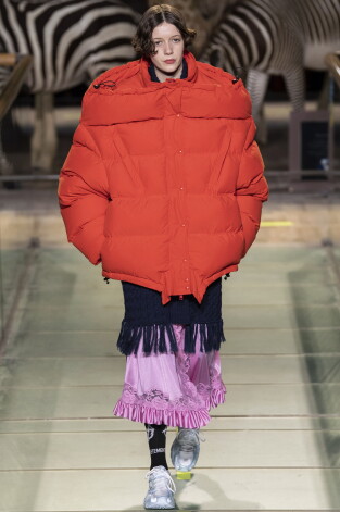 Vetements была одной из главных марок, благодаря которым в моду вернулись 90-е. Демна ностальгировал по временам своей юности, когда к своему первому костюму Adidas он относился, как к невероятной ценности, и который так ни разу в жизни и не надел. Прикиды советских гопников постперестроечной эпохи, толстовки с кадрами из “Беверли Хиллс” и «Титаника», одежда омоновцев и сотрудников “Макдональдса”, даже фартуки из бабушкиной клеенки - все это оттуда, из 90-х.