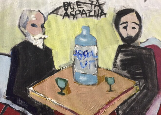 Фоторепортаж: Кровавый фонтан и Райнис с бутылкой водки на выставке к столетию Академии художеств