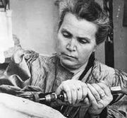 Самая известная работа Веры Мухиной - скульптура “Рабочий и колхозница”, созданная в 1937 году для советского павильона на Всемирной выставке в Париже и ставшая эмблемой киностудии Мосфильм. Ни одно другое скульптурное произведение не сумело так точно передать дух советской эпохи. Разумеется, оно служило орудием пропаганды, но это вовсе не умаляет его гениальности. Недаром французы хотели эту скульптуру выкупить, но это им не удалось.