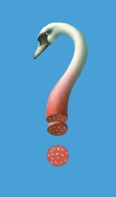 Даже если вы совсем не интересуетесь искусством, работы Димитерса вам, безусловно, знакомы. Ироничный “портрет” партийного функционера с кирпичом вместо головы (в буквальном смысле “морда кирпичом”) или изображение лебедя, чья длинная изогнутая шея превращается в нарезанную ломтиками колбасу, - эти плакаты давно уже стали классикой.
