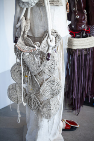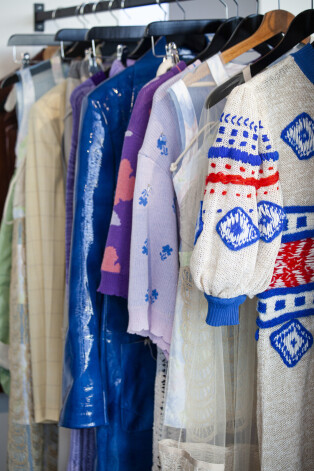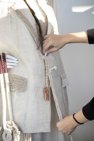 Коллекция, которую Сабине представила на конкурс, называется «+371» и вдохновлена народными техниками рукоделия, которые всегда были популярны в Латвии. Это ностальгия по тем временам, когда не существовало ни Интернета, ни изобилия товаров, а многие латвийские женщины обшивали и обвязывали себя и своих близких (семья Сабине не была исключением).