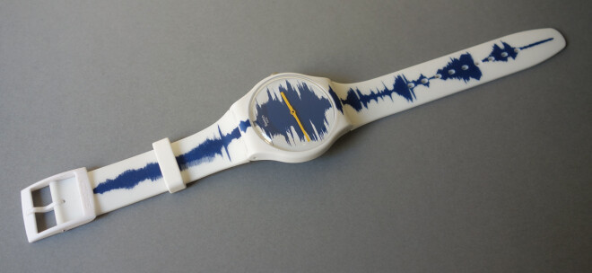 Судьба талантливого латвийского дизайнера Марты Зарини-Гелзе оказалась, увы, драматичной (девушка трагически ушла из жизни в 26 лет). Однако сделать Марта успела довольно много. Она с азартом участвовала в различных дизайнерских конкурсах и не раз в них побеждала. В 2012 году на престижном конкурсе Artrules Swatch Design, организуемом швейцарской часовой фирмой Swatch, Марта опередила 1 300 соперников из 90 стран мира и победила с дизайном часов под названием «Крик победы». Ее идея была простой, но гениальной: ликующий возглас победившего спортсмена был превращен в изображение звуковой волны. Впоследствии этот рисунок украсил коллекцию часов Swatch, выпущенных ко всемирному чемпионату по сноуборду. В коллекцию музея эти часы передали родители Марты, известные художники Вия Зариня и Каспарс Зариньш.
