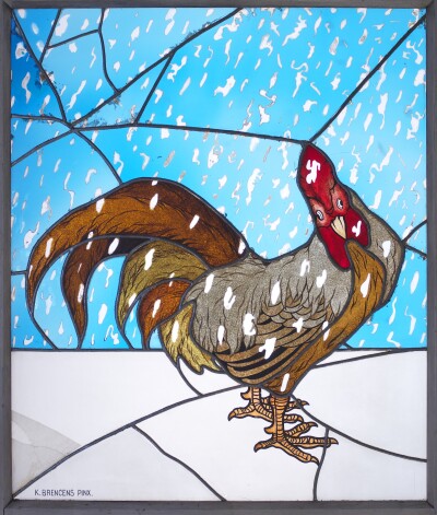 7. Карлис Бренценс. Витраж «Петух в снегу», 1904