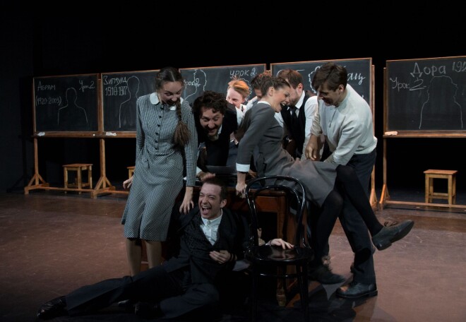 «Наш класс» -- спектакль особенный, никого не оставляющий равнодушным. В 2008 году польский драматург Тадеуш Слободзянек написал пьесу, действие которой охватывает несколько десятилетий – от конца 20-х годов до наших дней. У десяти героев, польских и еврейских ребят из одного класса, есть реальные прототипы -- уроженцы маленького городка Едвабне, что всего в 500 километрах от Риги, и события, которые находят отражение на сцене, -- не выдумка автора. С этими десятью ребятами за время спектакля мы проживем десять жизней. Герои будут дружить, веселиться, ссориться, мириться, драться. Они будут спасать и предавать друг друга, любить, ревновать, ненавидеть. И только одного они никогда не смогут – разорвать невидимую нить, которою связаны их жизни и смерти… Ни мгновения фальши нет в поразительном спектакле, созданном молодыми вахтанговцами под руководством режиссера Натальи Ковалевой. На их стороне правда, историческая и художественная.