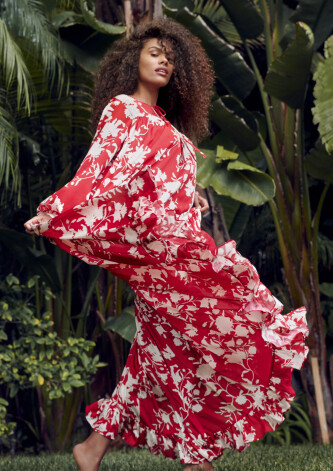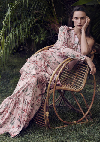 Бренд славится женственными силуэтами, романтичными оборками и яркими цветочными принтами.