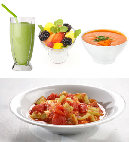 • Свежие фрукты и овощи подойдут тем, кому потребление жидких продуктов не кажется привлекательным. Эти термически необработанные продукты обеспечат организм всеми нужными веществами, что и соки, но плюс ко всему организм получит и клетчатку. За такие живые продукты организм определенно будет благодарен и отдохнет от переработки промышленно произведенной пищи.