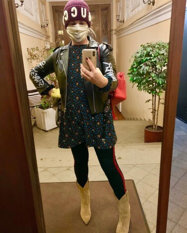 Екатерина разместила в блоге фото, на котором ее и родная мама не узнает. Шапка, маска на лице, косуха и леггинсы с красными лампасами. "Собралась в «Останкино». Мама родная не узнает. Накануне вернулась после смены домой - коты шарахнулись. Кто здесь? Где я? "«Это не она», - вопил Руни. «Нет, это она, - вопил Берендей. - Курточка и шапка ее!»", - поделилась Екатерина тем, как домочадцы оценили ее прикид.