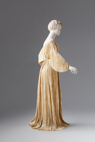Плиссированные платья были придуманы Фортуни в 1907 году, а в 1909-м он их запатентовал. По одной из версий, шелк вручную сметывали в мелкие складочки, потом обрабатывали специальным составом, а затем прогоняли через горячие фарфоровые валики. Но все это в теории, а на практике секрет плиссировки Фортуни до сих пор не разгадан. Последователям Фортуни – дизайнерам, увлекавшимся жатой текстурой (от Мадам Гре, которая работала с плиссировкой в 50-е годы, до Иссея Мияке, который выпустил знаменитую коллекцию 1994-го года Plisse, please), приходилось изобретать свой собственный велосипед.