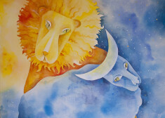 «В волшебном мире картин Полины ведут неспешный разговор животные, птицы и люди. Художница играет со смысловыми масштабами, когда маленькое, но важное вдруг становится большим, а все остальное размещается на поверхности холста, создавая некую путевую карту рассказа. Внутри кота вдруг оказывается целый город, занесенный снегом, старый лев, как эфемерное существо, смотрит с колен своей музы, а белье на веревках в глазах любящей и ждущей женщины вот-вот превратится в улетающих птиц», — говорит Галина Максимова.