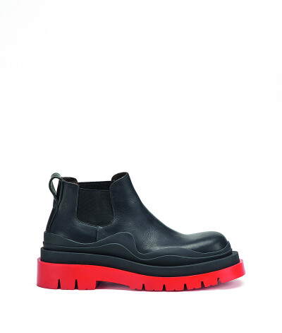Новая версия необыкновенно популярных в прошлом сезоне ботинок челси от Bottega Veneta – теперь с яркими подошвами, в разных цветах и разной высоты. Очевидный хит.