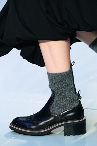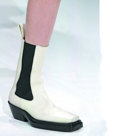 Смесь ковбойских сапог с ботинками челси – горячий тренд от Bottega Veneta. В коллекции также присутствовала версия в виде обтягивающих ботфортов. Что из них поступит в продажу и сколько это будет стоить, пока неизвестно.