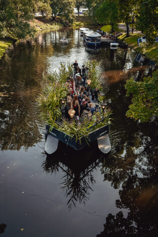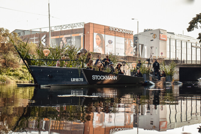 Подобного в Риге еще не было: по городскому каналу двигался плот, под завязку нагруженный моделями в самых свежих «луках». Таким необычным способом универмаг Stockmann решил отметить начало нового сезона.