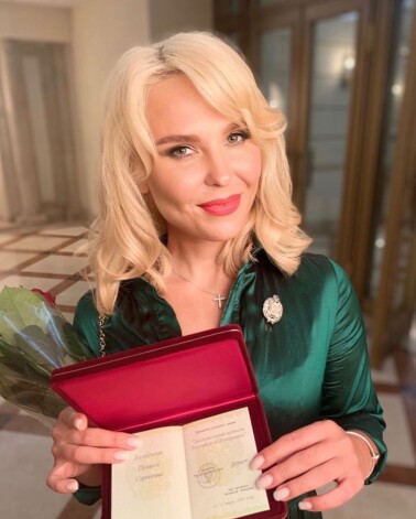 Не успела Пелагея вернуться с отдыха в Турции, как попала в Большой театр на чествование заслуженных артистов России. Певица получила государственную награду из рук Ольги Любимовой, о чем рассказала фолловерам в Instagram. Для торжественной церемонии экс-супруга хоккеиста Ивана Телегина выбрала изумрудное платье-рубашку. Она расстегнула пару верхних пуговиц, затянула пояс на талии и надела бежевые лодочки. Образ дополнили воздушные локоны и яркий макияж.
