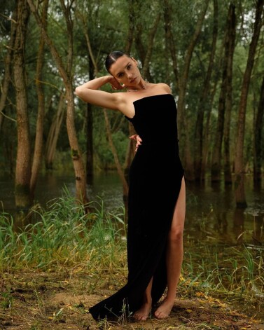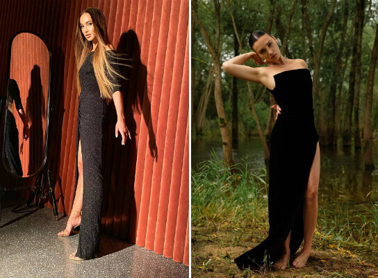 Сегодня две Ольги чуть ли не одновременно выложили фотографии, на которых позируют в похожих длинных черных платьях с разрезом от бедра. Бузова дополнила образ босоножками, а Серябкина предпочла остаться босиком.